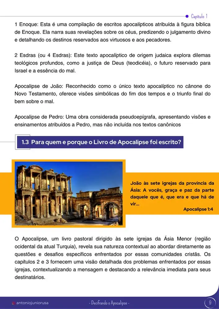 “Este Guia Panorâmico do Apocalipse foi criado pensando tanto em você, Estudante, que deseja aprofundar seu conhecimento, quanto em você, Professor, que busca um recurso abrangente, completo e didático para enriquecer seu ensino ou seu próprio aprendizado.